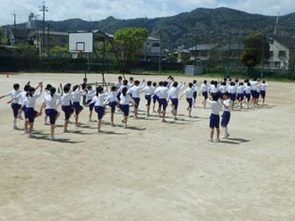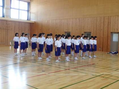 どちらも集団行動の練習です。体育館では1年生が,回れ右,などの練習をしていました。グラウンドでは,3年生が更新の練習です。全体がビシッとそろうと気持ちがいいですね。