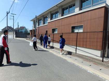 男子バレーボール部は,日曜日の午前中,地域を回り,ごみが落ちていたら拾うという清掃活動をしています。活動中,地域の方々がお声をかけてくださることも励みになっています。ありがとうございます。2ヶ月ほど続けておりますが,今後も続けていきたいと思います。