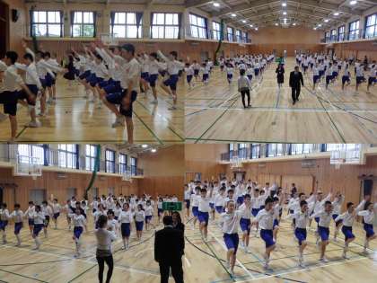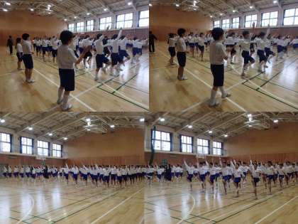 しっかり前を見ながらも,前や横の人を意識し,腕を上げる角度,太ももとあげる高さまでそろえるのは大変ですが,参加者全員一丸となって練習に取り組んでいました。練習終わりの挨拶は,一段と元気いっぱいな,力強い挨拶でした。本番が楽しみです。