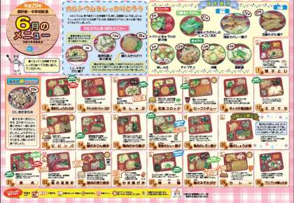 昨日,6月分の学校給食申込書(配布文書欄にも掲載)と献立表(写真)を配布しました。