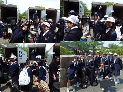 吹奏楽部のメンバーは,昨日トラックに楽器を運び出し,今日はスタンドで演奏してくれました。選手団とは別行動だったのですが,帰るときに,楽器を運び込んでいる吹奏楽部メンバーと出会いました。とても長い時間の演奏,大変だったと思います。本当にありがとうございました!!!