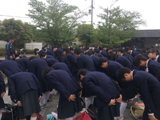 ↓これは,嵐山駅で解散するときの写真です。礼に始まり礼に終わる。どんなときも,どんなことも,感謝の気持ちで,そしてお互いを讃え合う気持ちで「ありがとうございました!」とても美しい生徒達の姿だと思います。