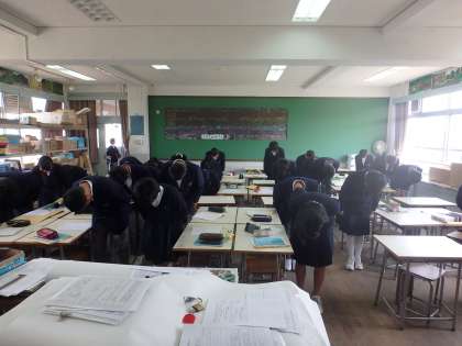 授業の最後には,事業所の方たちへの挨拶を想定して,いつも以上に丁寧なお辞儀ができていました。