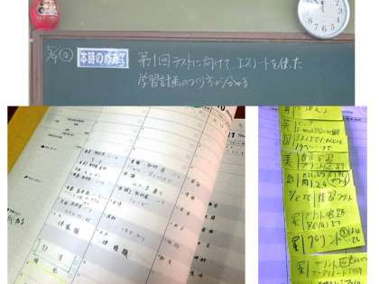 毎日エスノートをしっかり活用し,さらにテスト勉強の計画も,配られたプリントに添ってしっかり立て,入学後初めての第1回テストに臨んでほしいと思います。