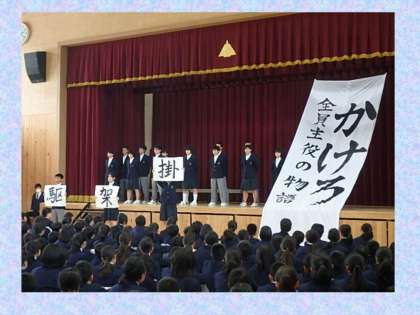 生徒会が,スローガンを提案しました。「かけろ」という文字を華々しく発表し,3つの意味を説明してくれました。