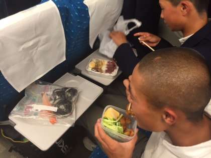 9:50頃,ちょっと早いですが新幹線の中で昼食です。朝も早かったので、みんなお腹が空いてます。