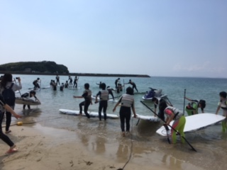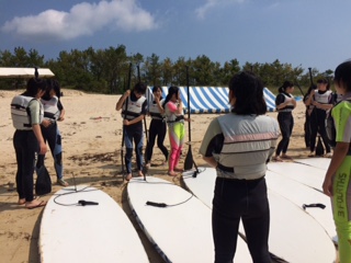 パドルボードの体験がスタートしました。