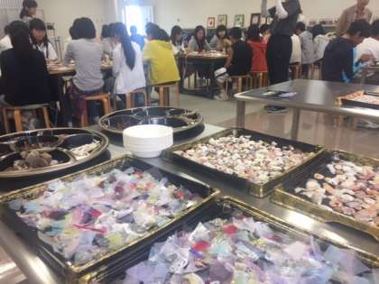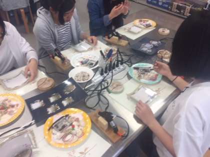 昨日行った一支国博物館の三階で,まずはフォトフレームづくりスタートです!