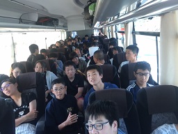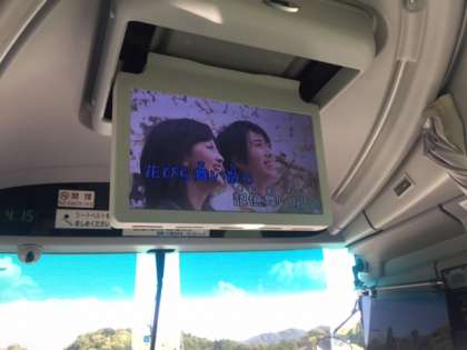 ホテルに向かうバスの中,1号車はカラオケ大会中です。