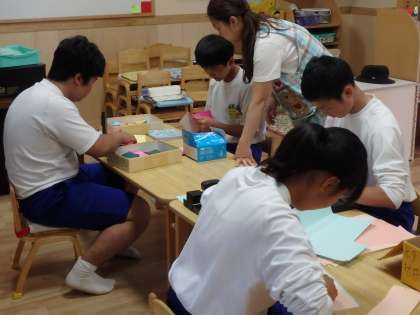 幼稚園では園児がいないときも,園児のために準備をするという大切なお仕事を進めていました。