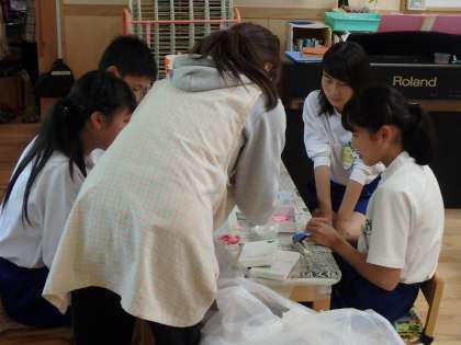 慣れない作業ですが,教えてもらいながら一生懸命取り組んでいます。