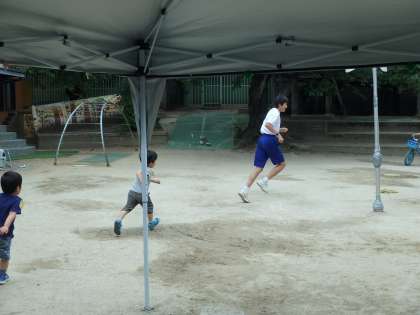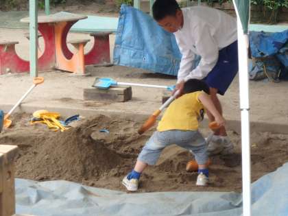幼稚園では園児と走り回ったり,一緒に大きなお山を作ったり大忙しです。