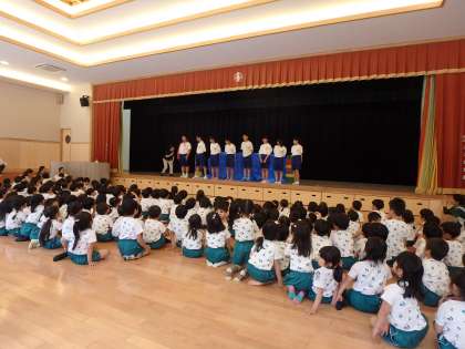 ある幼稚園では,園児たち全員の前で発表をさせていただきました。