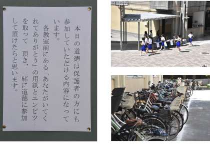 朝早くから多くの方に御来校いただきありがとうございます。只今,1限目が終了いたしました。3限目には,参観者の方にご参加いただく道徳の時間を実施いたします。積極的にご参加いただけましたら幸いです。また,2年生の生き方探究チャレンジ体験学習や3年生の修学旅行の様子を掲示しております。ぜひご覧ください。