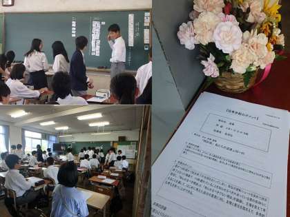 2年生の道徳は,「友情について考え,よりよい友人関係を築こうとする態度を養う。生徒ひとりひとりが互いの立場を理解し,協力し合って集団生活の向上に努めようとする心情を養う」ということを目標に,「時計係」(私たちの道徳p.60〜65)という資料を用いて,友情・信頼をテーマに行われました。
