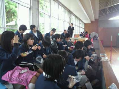 みんなで ひとところに座って 楽しくしゃべりながら食事をしています