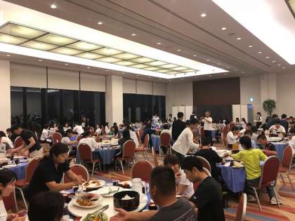 写真は,昨日のホテルでの夕食の様子です。一日動いてお腹が空いていたのでしょう。みんなもりもり食べていました。