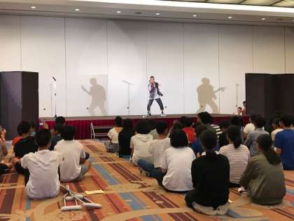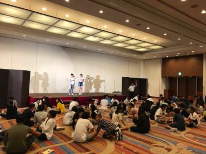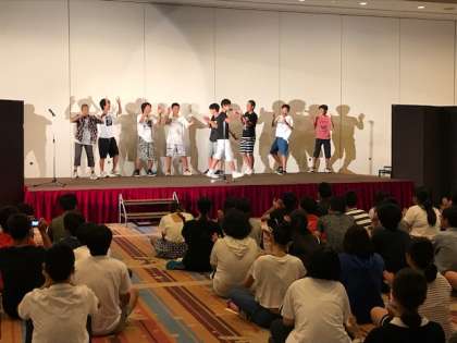 夕食後,ホテルの大会場でレクリエーションが行われています。これまで,修学旅行実行委員や発表者を中心に準備を進めてきました。会場の盛り上がりは最高潮,拍手と歓声の嵐です。楽しい夜はまだまだ続くことでしょう。