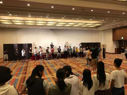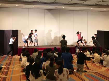 写真は昨晩のレクリエーションの後半の様子です。それぞれに工夫をこらしたゲームやパフォーマンスが続き,あっという間に終了時間になりました。最後はこの修学旅行の日程付近で誕生日を迎えた人たちをお祝いするサプライズも。楽しい時間を「作りに作って作りまくる」ことができました。