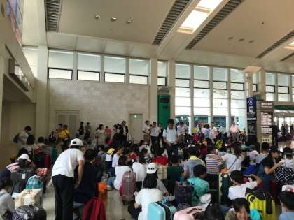 楽しかった修学旅行も気づけばあっという間。国際通りを後にし,那覇空港へやってきました。いよいよ沖縄から飛び立ちます。帰りもよいフライトになることを祈って。
