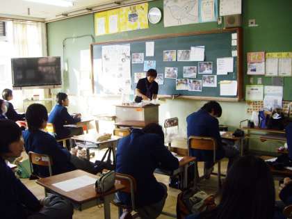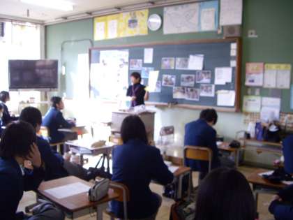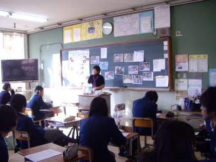 本日 1限の3年5組の授業に 西院保育園の先生が 四条中学校に