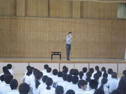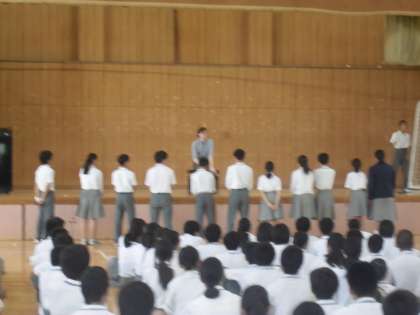 ALTのハリー先生とのお別れの式を行いました。1年生からの歌のプレゼント,生徒代表のお別れのあいさつの後,ハリー先生から激励の言葉をいただきました。1年間でしたが,ハリー先生には英語の授業でたくさんのことを教えていただきました。ありがとうございました。お元気で・・・。