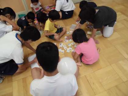 9月10日(月) 先週に続いて,3年生家庭科の「ふれあい学習」を行いました。雨の降る中,今日も西院保育園から園児さんがたくさん来てくれました。積み木や絵合わせカードなどで楽しく遊びました。やはり今日も園児さん以上に楽しんでいるのは3年生でした。