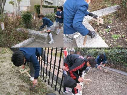 生徒会が 昨日の放課後 花壇のプレートを