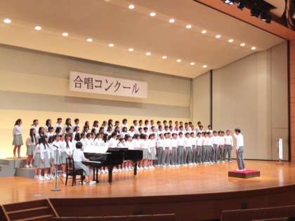 3年生の学年合唱です。曲は「島唄」,3年間の集大成の感動的な合唱です。