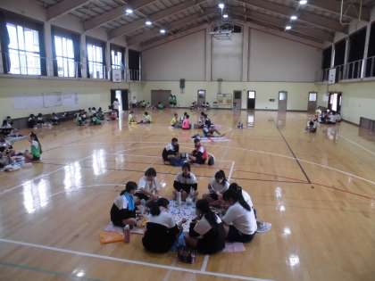 3年生は,球技大会の合間ということで,今日の昼食はみんなで体育館でとりました。