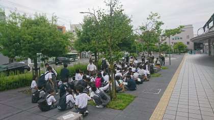 1年生は,本日,嵯峨嵐山への校外学習です。花園駅に集合しました。この後,JRで嵯峨嵐山駅まで行き,班別活動が始まります。