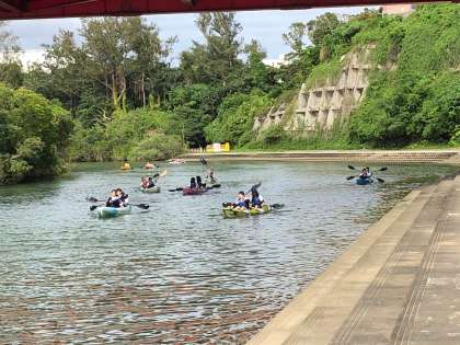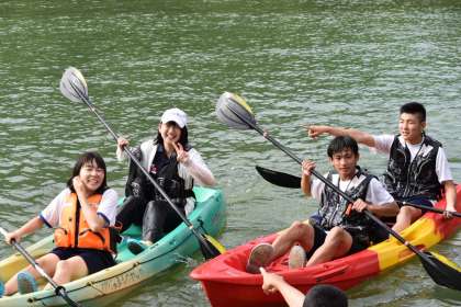 カヤック体験では,2人1組で息を合わせて比謝川をのぼりました。転覆したペアもあったようですが,普段できない良い経験をさせてもらいました。