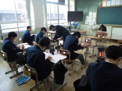 1月18日(土) 朝から3年生は,来週23日からの総括テスト5に向けて土曜学習会を行っています。総括テスト5が中学校での最後の定期テストになります。入試も控え,3年生にとっては本当に大切な時期を迎えています。体調を整え,しっかりがんばってください。
