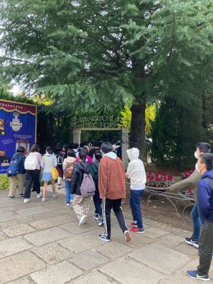 大池公園にてクラス写真を撮影した後,音楽と森の美術館へと出発しています