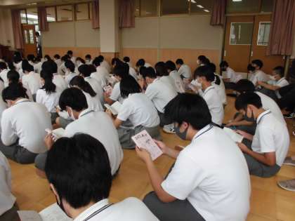 校長先生や修学旅行実行委員長からのお話の後,