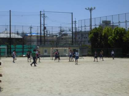 男子は,初戦東山中学校と対戦しました。前半から相手を圧倒し,前半18対1,後半も気を緩めず34対4で勝ちました。この勢いで,次の試合もがんばってください。
