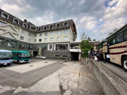 今夜,宿泊する「白馬アルペンホテル」に到着です。ロビーにて生徒代表挨拶を行い,それぞれ部屋に入って,荷物を置いたら夕食となります。