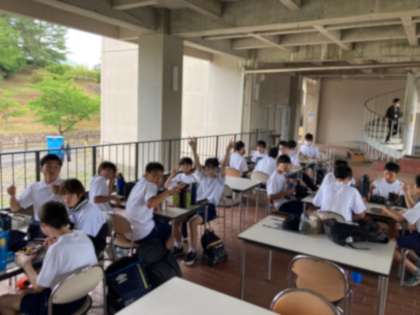 2年生は,午後からの活動に備えて昼食をとっています。