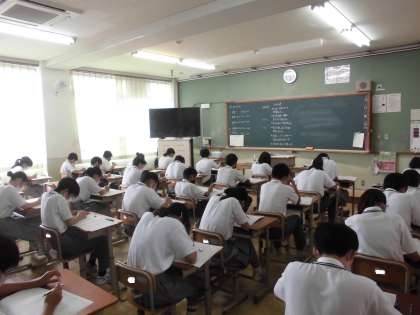 9月15日(木) 今日と明日の2日間、総括テスト3を実施します。本日は、国語、数学、英語のテストが行われています。どのクラスもしっかり問題に取り組んでいます。毎日の学習の成果を出せるよう全力でがんばってください。