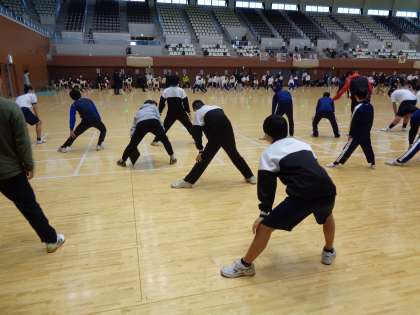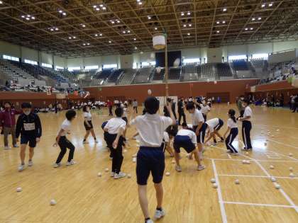 本日午後、1組は島津アリーナ京都で開催された育成学級・支援学級「第62回 合同運動会」に参加しました。この運動会は、「一人一人が楽しさいっぱい! 友達いっぱい! がんばりいっぱい!」を目標に京都市立中学校育成学級・附属中学校特別支援学級の子どもたちが集まり、日頃の学習の成果を発表・交流する場で、3年ぶりに開催されました。50メートル走、100メートル走、玉入れの競技に出場し、元気いっぱいがんばりました。白組に参加した玉入れでは、見事1位となりました。