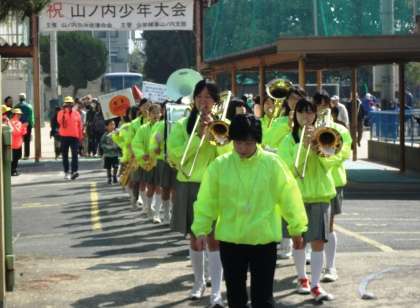 午前10時に警察署の音楽隊の方を先頭にパレードが始まりました。本校の吹奏楽部の生徒も参加しました。