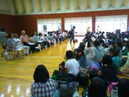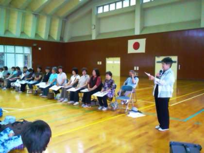 安心院公民館にて、入村式が行われました。代表者のあいさつ、お世話になる家庭へのあいさつと続きました。