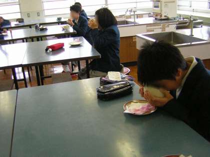 先日、1組の家庭科の時間に調理室で、「お茶会」を開きました。