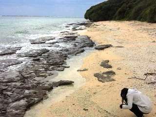 伊江島の海には、まだ生徒の姿は見えません。