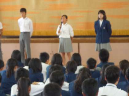 最後に生徒会より「ベル着運動」の取り組み結果の報告があり「一人一人の意識で学校が変えられる」という大事な言葉を伝えていきました。