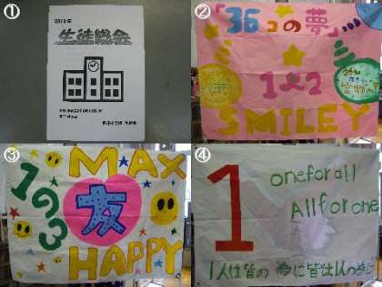 それぞれのクラスの思いを込めて作った 「学級旗」