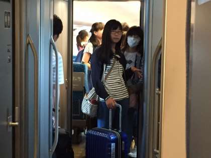 新横浜駅に到着しました。写真は新横浜駅の1コマです。これからバスに分乗して「ソレイユの丘」に向かいます。昼食は「ソレイユの丘」でBBQです。