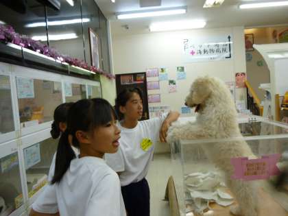 チャレンジ体験も最終日を迎えています。生徒たちはこの体験で様々なことを学んでいるはずです。“しごと”の厳しさ、楽しさ、そして、やりがい。きっと思っていたよりしんどかったり、たいへんだったりしたと思います。少しは働くと言うことの意味を理解したと思います。写真はペットショップと幼稚園とスーパーの様子です。