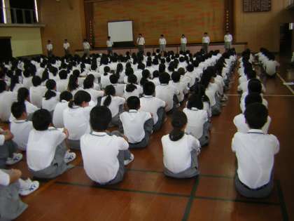 本日の6限、全校集会を行いました。前半は春季総合体育大会の表彰と、その報告会が行われました。春体ではハンドボール部男子が「優勝」、女子が「準優勝」を飾り、体操競技部女子が団体「準優勝」、男子が「第4位」の好成績を収めました。また、個人の部で跳馬「準優勝」、個人総合「第4位」の表彰も行いました。陸上の男子200mの「第3位」の表彰もありました。そして、ラクビー部の『皐月杯』グループBの「優勝」も表彰されました。