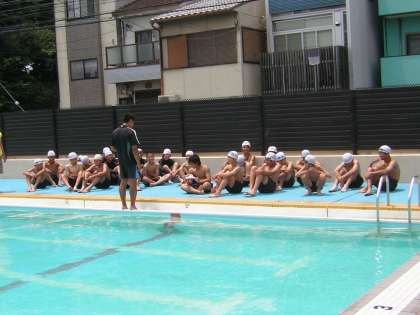 今日から体育の授業で水泳が始まりました。学校では一足早い夏の始まりです。曇り空から時折太陽が顔を出すものの、プールの水はまだ少し冷たいようです。それでも生徒たちは気持ちよさそうに、元気よく水しぶきを上げていました。